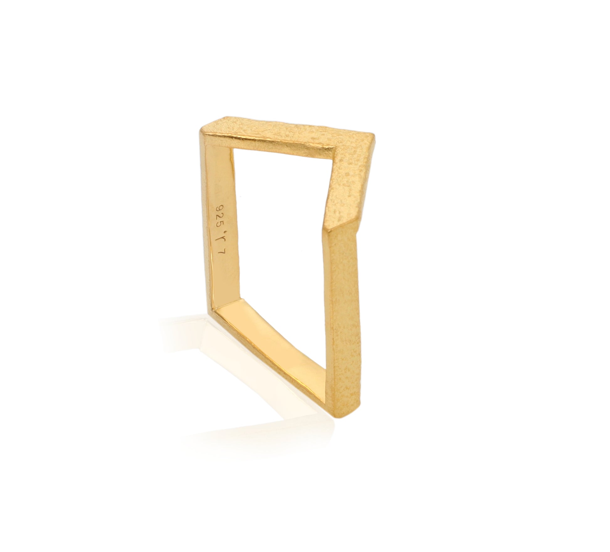 The Mud Ring is crafted from recycled 925 Sterling Silver and plated with 25 layers of 18K gold, giving it a warm hue and a durable finish designed to withstand everyday wear. Featuring a double-sided design, the ring can be worn on either face, offering versatility and a distinct look from every angle.