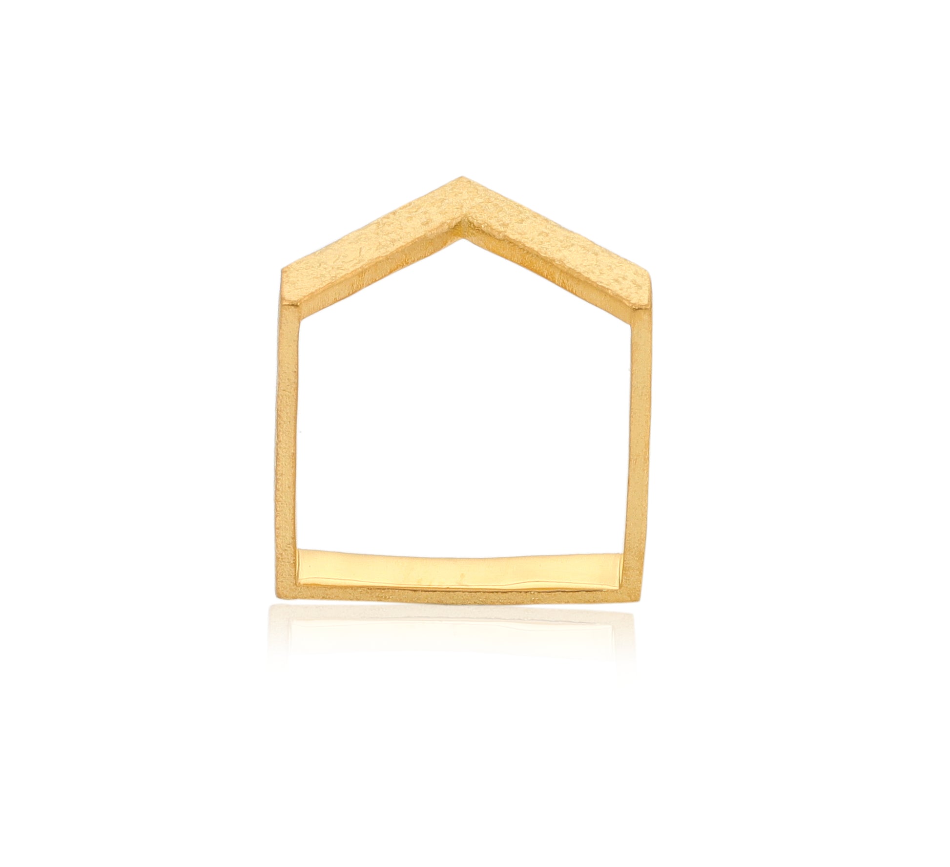 The ring is defined by its textured, irregular surface, inspired by the tactile beauty of ancient mud walls. Subtle ruggedness meets clean geometric lines to create a calm and authentic contrast. A piece that blends the warmth of the earth with the radiance of gold, making it a contemporary addition infused with a touch of heritage.